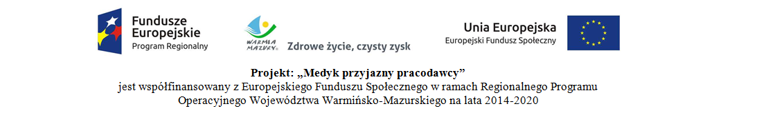 Projekt jest współfinansowany z Europejskiego Funduszu Społecznego w ramach Regionalnego Programu Operacyjnego Województwa Warmińsko-Mazurskiego na lata 2014-2020